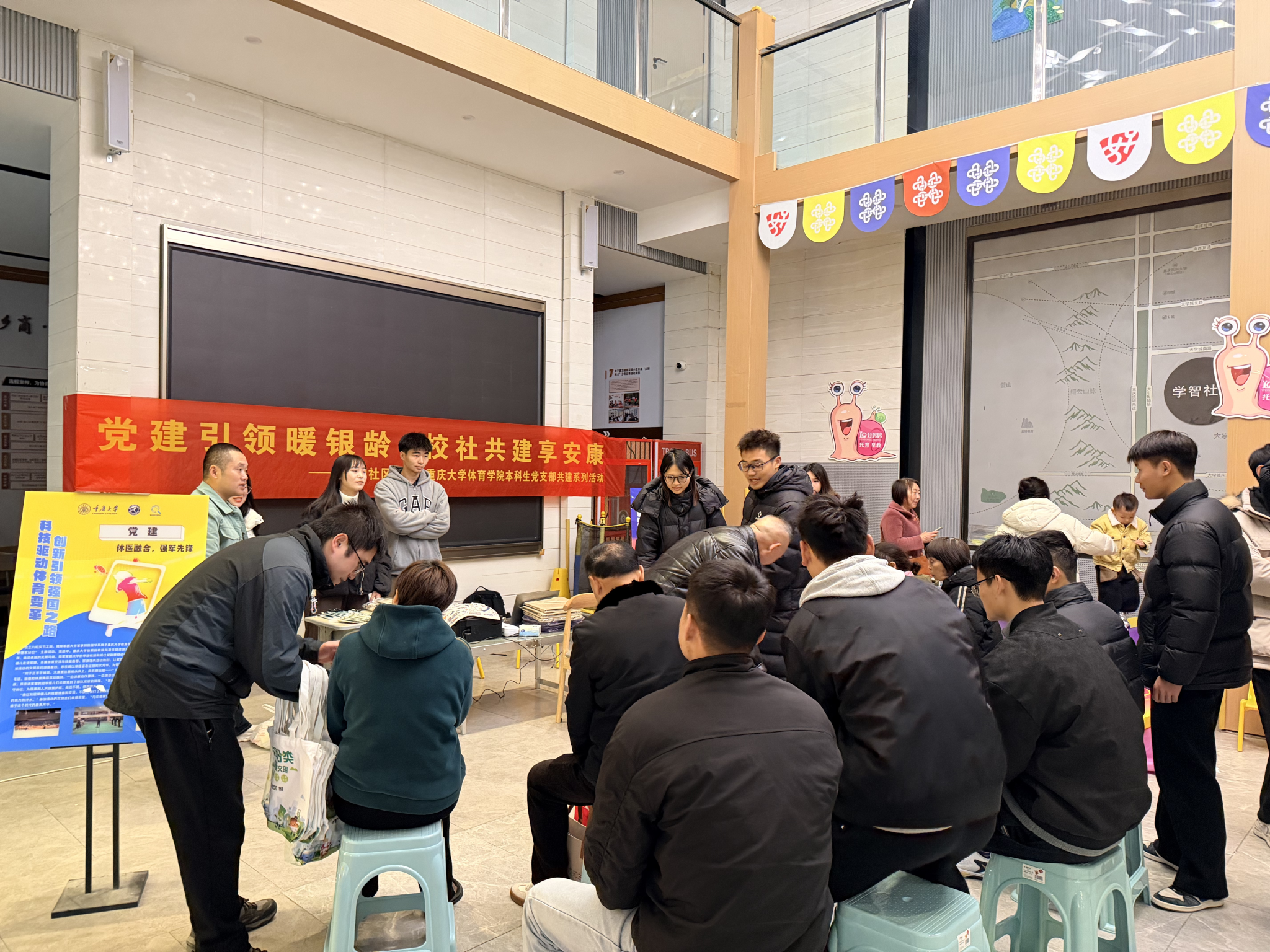 本科生党支部与虎溪街道学智社区党委携手,成功开展“党建引领暖银龄 校社共建享安康”主题共建活动。此次活动吸引了社区50余名中老年人积极参与,为冬日的社区增添了浓浓的暖意。