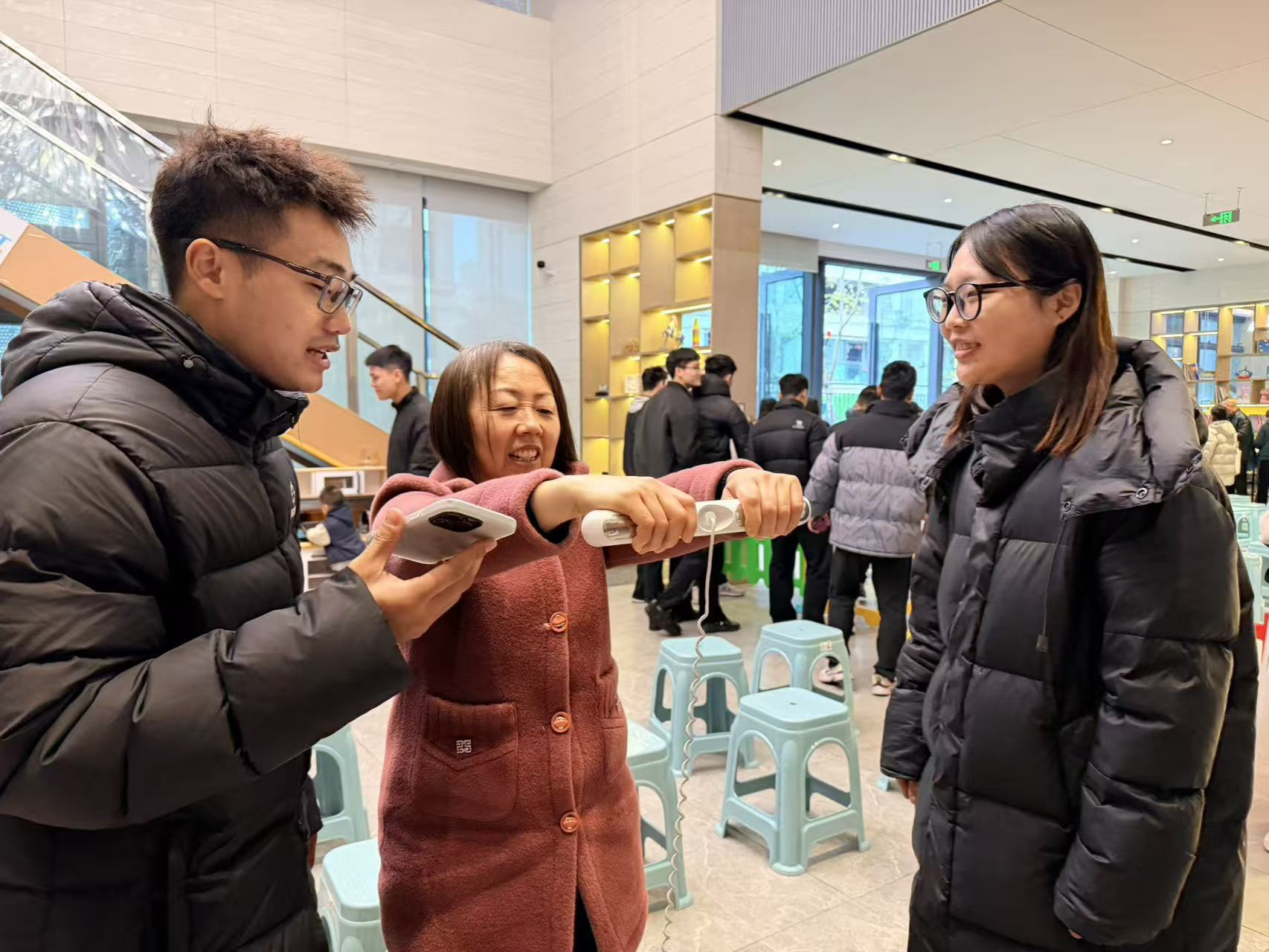 活动前期,本科生党支部与学智社区党委多次沟通对接,制定了详细的活动方案。活动当天,党员志愿者们早早抵达社区居委会,有序布置测试场地,摆放好身高体重秤、BMI计算对照表等专业工具,同时将精心准备的生活用品、健康手册等奖品整齐陈列。活动伊始,社区工作人员与志愿者一同引导老人有序签到、排队等候,耐心讲解活动流程。测试过程中,志愿者们分工明确,有的负责精准测量身高、体重并计算BMI指数,有的结合专业知识为老人逐一解读数值背后的健康密码,针对超重、偏瘦、体重达标等不同情况,量身定制饮食搭配建议和适宜的运动方案。对于患有高血压、关节炎等基础疾病的老人,志愿者特别提醒运动注意事项,推荐太极、慢走、广场舞等低强度运动,并现场示范简单的拉伸动作,帮助老人缓解身体不适。此外,志愿者还向老人们发放健康科普手册,普及冬季养生、疾病预防等知识,耐心解答老人提出的“冬季锻炼如何保暖”“日常饮食怎么控制体重”等各类疑问,用专业且通俗易懂的讲解获得了老人们的一致认可。