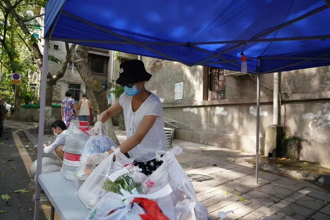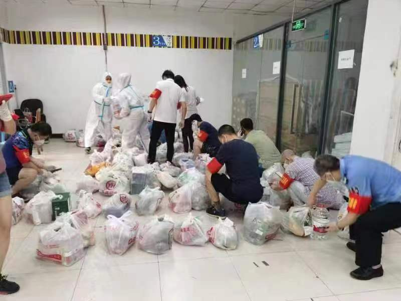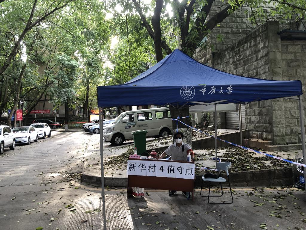 明兴建协助负责学校后勤保障工作,落云柯负责A区物资保障志愿者,冉峰在物资转运组帮助校外物质转运进学校,并放置于转运点。幸昊在B区科学会堂协助核酸采集扫码,冯杰在A区新华园社区值守。关丽静在A区大门做社区居民物资保供小组志愿者,负责把居民采购的物资从校门口转运到校内分发点。