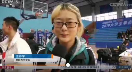 赛前赛后我校队员吐然别克、黄金涌和王丹宇分别受到了中央电视台拳击专项记者尉迟学敏的采访。11月27日黄金涌和叶斯太战胜对手,至此,吐然别克、叶斯太和黄金涌我校资安学院三名采矿工程专业学生全部进入决赛。