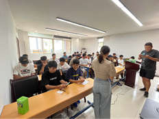 最后,汤婕对一些具体工作进行安排。一是在学习上要求同学们要自觉提高学习主动性,帮助同学们了解大学选修与必修课程,详细介绍了大学课程的组成和搭配,以及大学生涯课程的安排。二是组织学长手把手教学新生进行选课,提供精确一对一服务,切实保障了新生同学们选课的可实性。三是现场答疑,汤婕与涂思雅积极回答同学们提出的各种问题,帮助大家答疑解惑。