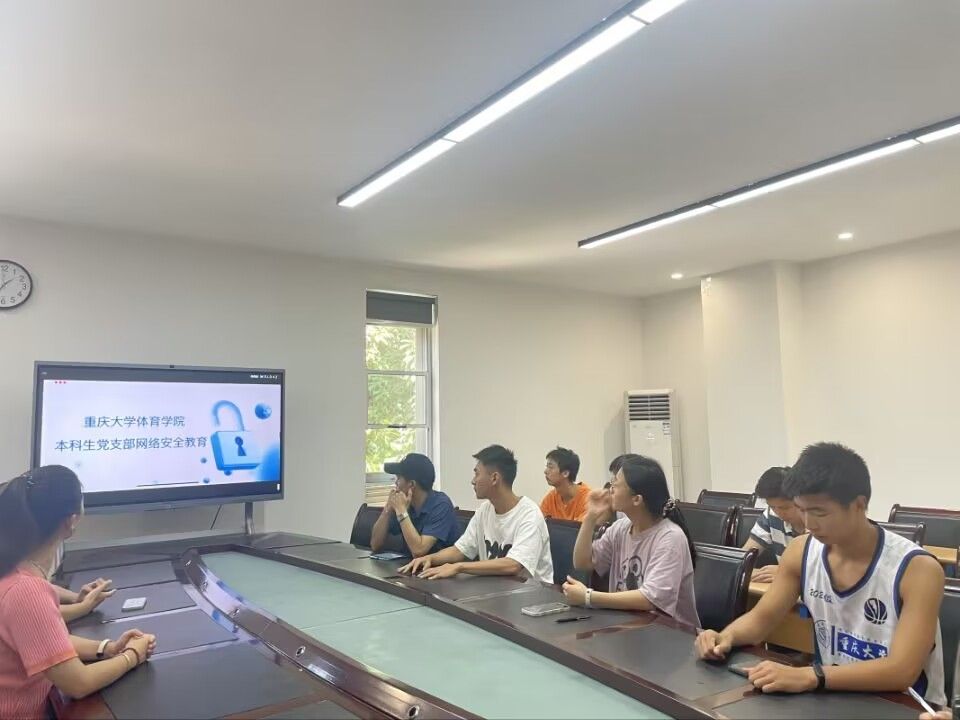 2023年9月7日下午14:00在海角社区 211会议室,海角社区 本科生党支部书记汤婕带领党内其他成员开展支部网络安全教育。