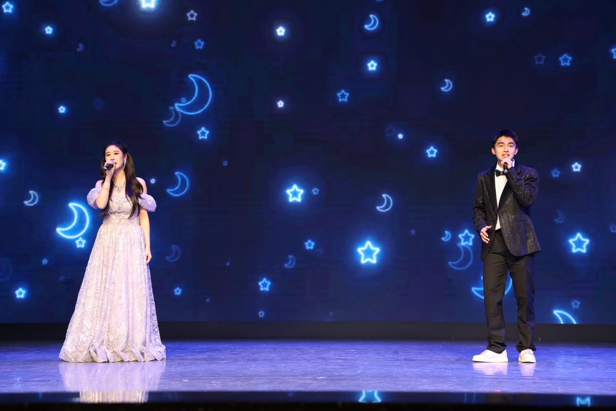 此次联欢会以 “序章·跃动新程”“聚力·体韵风华”“薪火·守望同心”“尾声·共谱华章” 为核心篇章,节目形式丰富多样、内容精彩纷呈。2025级本科生带来的《跃动T台,燃动赛场》,将运动项目与时尚走秀巧妙结合,尽显体育学子的活力与创意;《屋顶》、《夜空中最亮的星》歌曲联唱中,学生的深情演绎与青年教师的默契合唱,让歌声传递出温暖与希望。