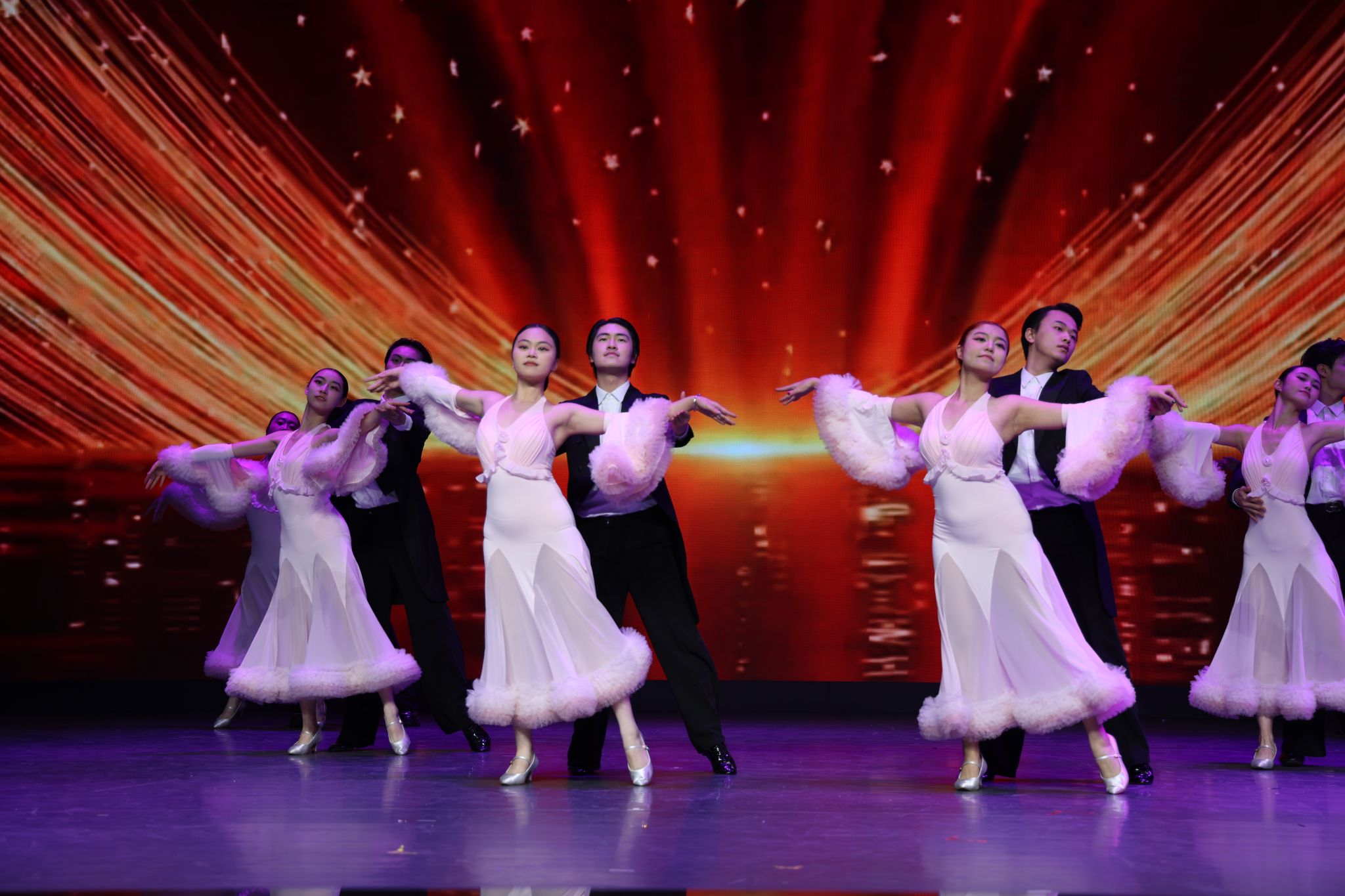 联欢会在重庆大学啦啦操队带来的《同心策马,共赴荣光》中拉开序幕。作为屡获殊荣的优秀团队,队员们以跳跃的身姿、昂扬的旋律和高超的技巧,瞬间点燃现场气氛,充分展现了重大学子蓬勃向上的青春风采。